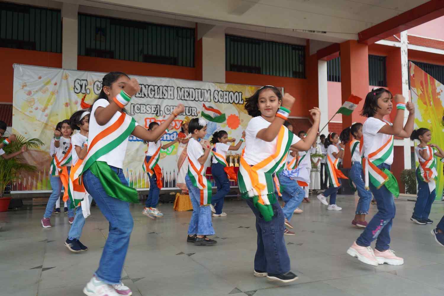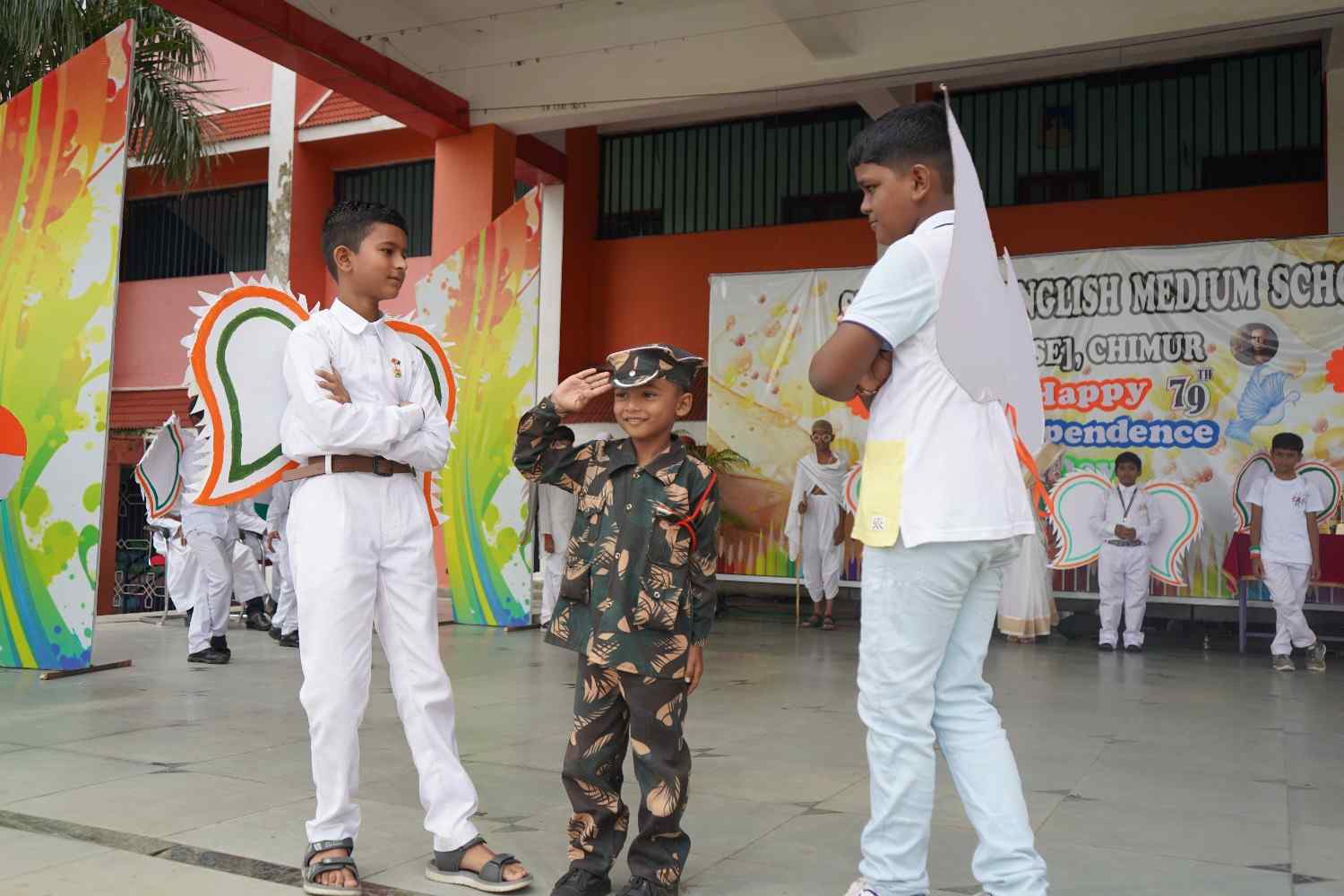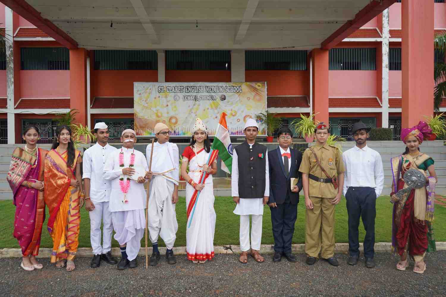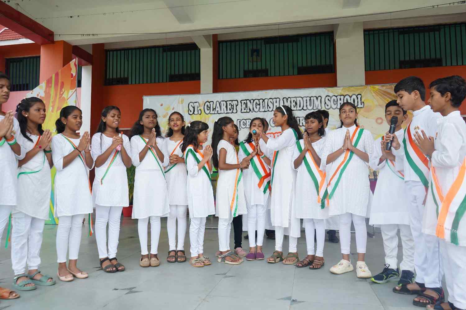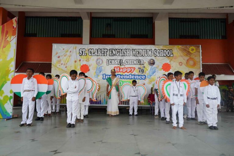 The 79th Independence Day of our nation was celebrated with great patriotic fervor and enthusiasm at St. Claret English Medium School, Chimur, on 15th August 2025. The event commenced at 8:15 a.m. in the gracious presence of the Manager, Rev. Fr. Jijo Jose, who unfurled the national flag. His kind and inspiring words motivated the students to be responsible citizens and to contribute positively to the nation's progress.