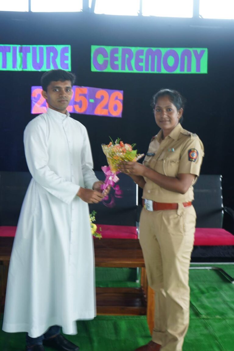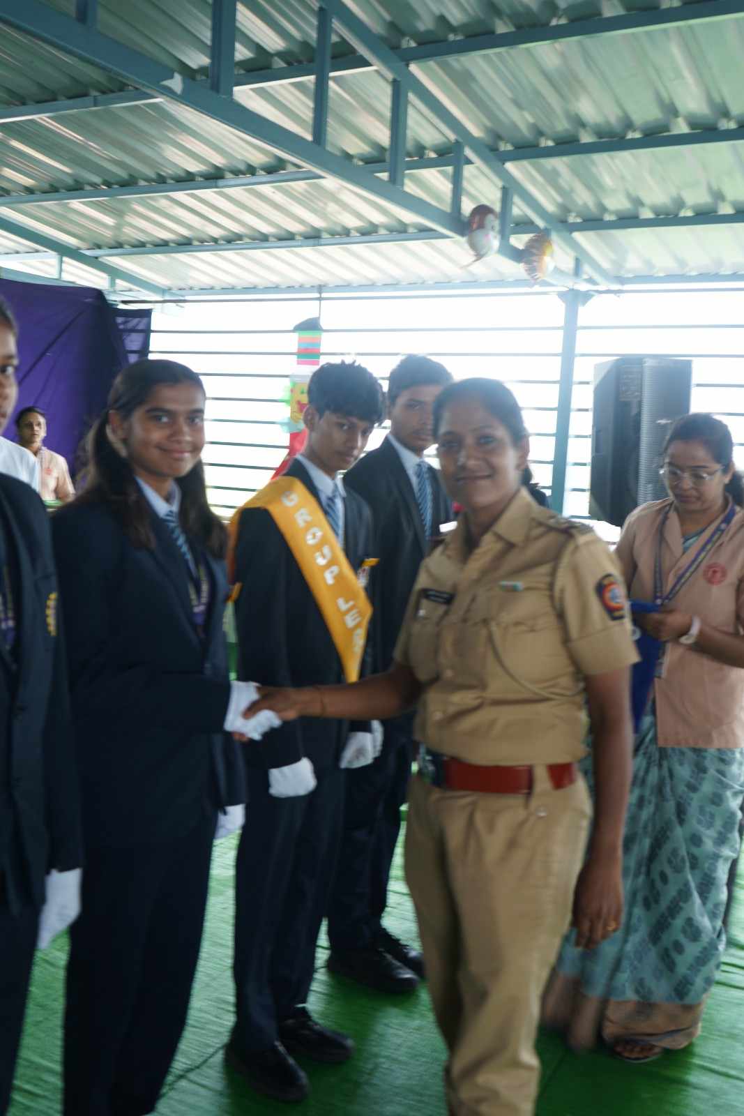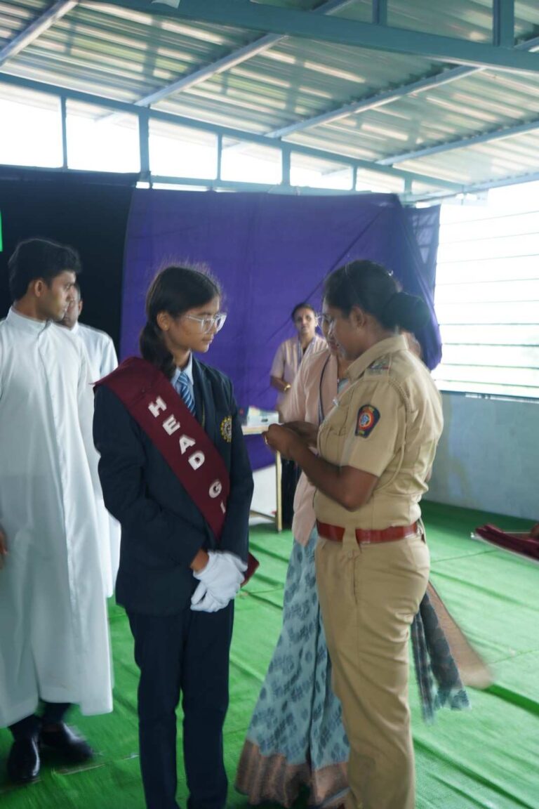 The presence of Ms. Shubange Patil the Sub Inspector of police Bhisi as the Chief Guest added grace and significance to the programme. In her inspiring address, she motivated the young leaders to carry out their duties with sincerity, dedication, and enthusiasm.