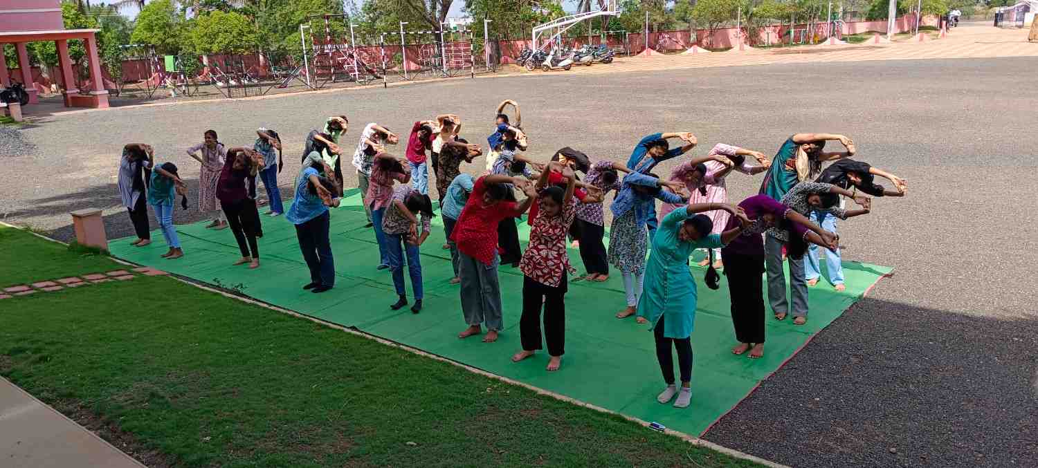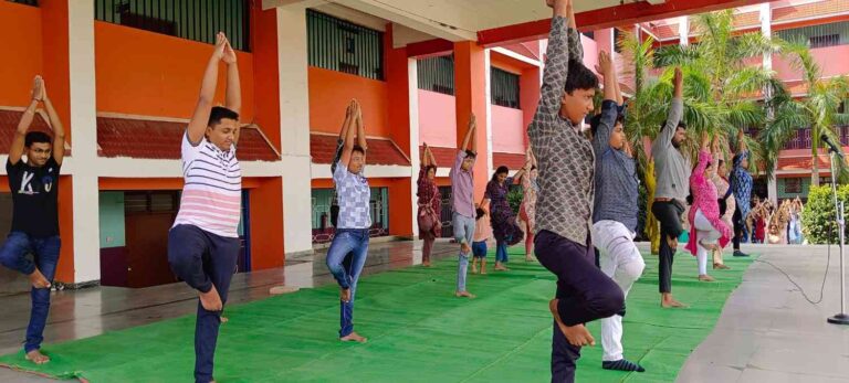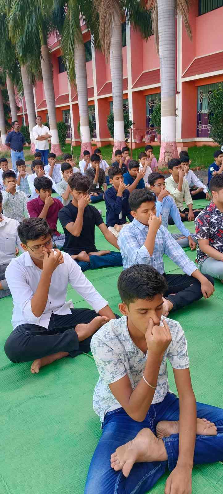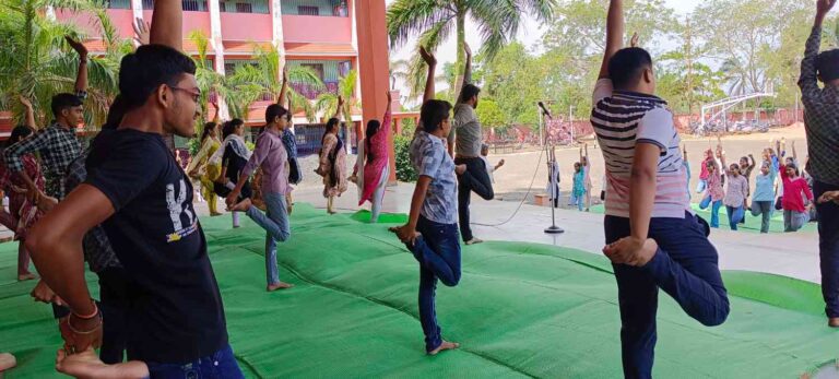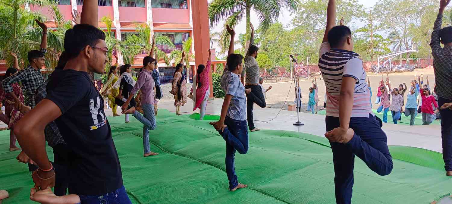 Students, guided by teachers, performed special yoga asanas that demonstrated flexibility, balance, and mental focus. An essay competition on the theme "Significance of Yoga in Daily Life" was conducted, where students expressed their thoughts creatively and meaningfully.